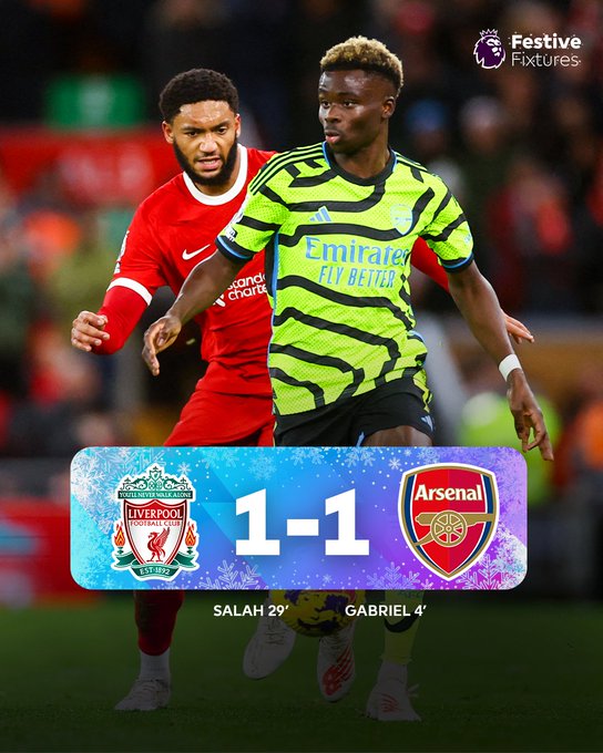 Con la cima en juego ninguno ganó. Ni Liverpool, ni Arsenal; en un partido sin tregua, a un ritmo intenso, el que implanta el conjunto de Jurgen Klopp y que asumió bien el cuadro de Mikel Arteta que tomó ventaja a los cuatro minutos, en una acción a balón parado, ejecutada por el noruego Martin Odegaard que aprovechó, de cabeza, Gabriel Magalhaes para dejar en evidencia a la zaga local y a su portero, Ederson.