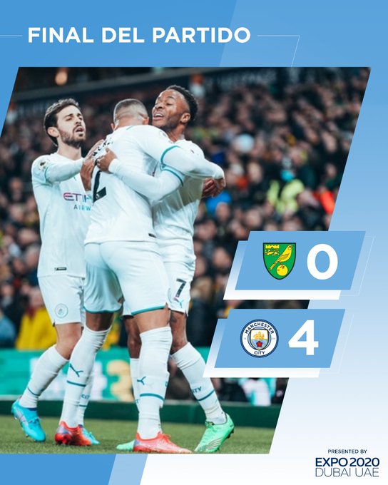 El Manchester City continúa con paso firme rumbo al título, al aplastar al Norwich por 0-4, en la Jornada 25 de la Premier League, con el Liverpool, que jugará el domingo ante el colista Burnley, y el Chelsea, que acaba de ganar su primer Mundial de clubes, como únicos perseguidores.