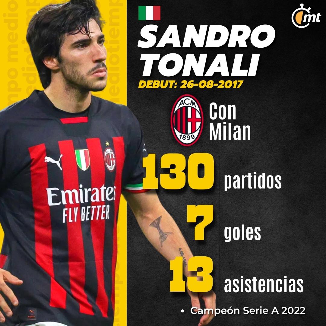 El centrocampista internacional con Italia, Sandro Tonali, hasta ahora en el Milan, se convirtió este lunes en el primer fichaje del club inglés Newcastle para la temporada que viene, por una cifra de traspaso de 70 millones de euros más variables (según Fabrizio Romano), tras firmar un acuerdo que los vinculará hasta el 2028.