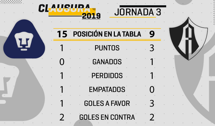 Ahora les toca enfrentar al Atlas, que también ha perdido en sus últimas tres visitas a CU, donde fue goleado 5-0, luego perdió 2-0 y sacó un triunfo 3-0 en el Clausura 2018.