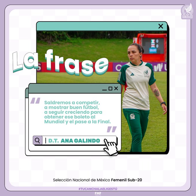 Del mismo modo, Ana Galindo reconoció que el equipo desea competir al más alto nivel y que saldrán al terreno de juego en las Semifinales con el deseo de obtener uno de los boletos para la Copa del Mundo Sub-20 Femenil. A la par de destacar que no importa las rivales que enfrenten pues ellas están preparadas para dar su mejor versión.