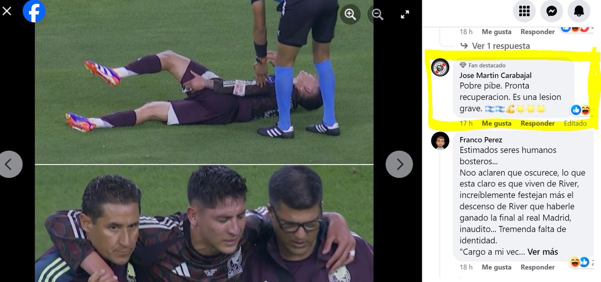 "'¿Me divierte' por la lesión de un jugador? Realmente hay que ser fracasado"; "Pobre pibe. Pronta recuperación. Es una lesión grave"; "Ojalá se recupere pronto"; "RESPETO para Edson Álvarez, jugadorazo de muy buena temporada en el West Ham".