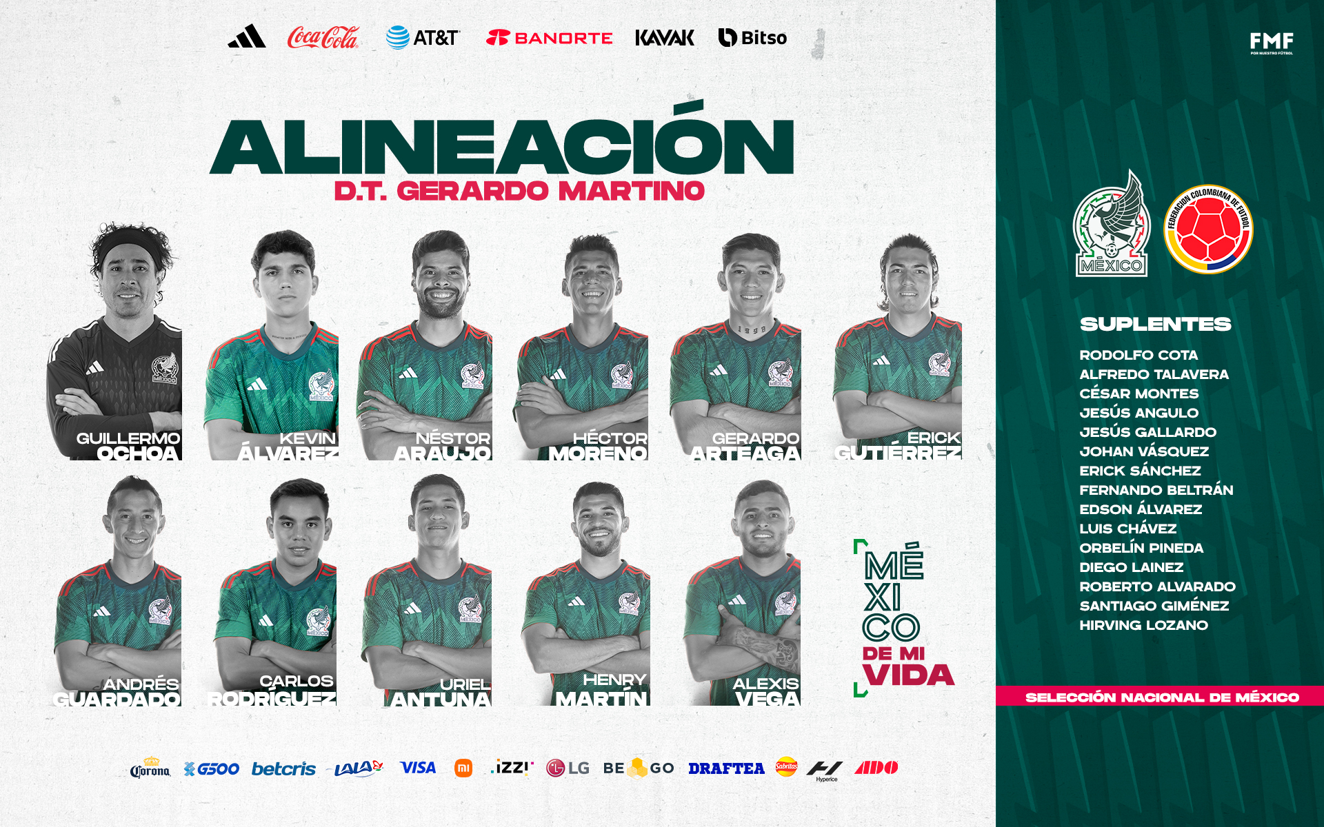 Es por ello que el Tata Martino realizó seis cambios en su once para probar futbolistas tras la victoria 1-0 ante Perú del pasado sábado; el entrenador argentino vuelve a dar la confianza al veterano Guillermo Ochoa y al joven Kevin Álvarez en la zona baja, además de repetir a Henry Martín en el eje del ataque.
