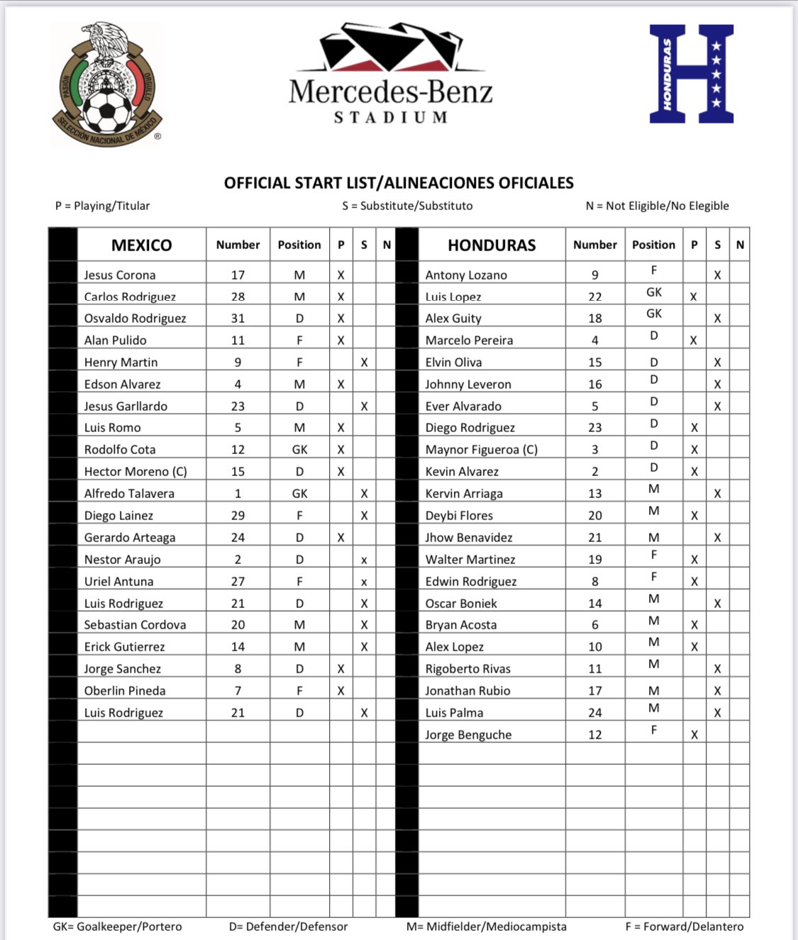 Otra de las novedades en la Selección del Tri para este juego es la incorporación de Osvaldo Rodríguez en la defensa central en una línea de tres junto a Héctor Moreno y Edson Álvarez, quienes por los costados estarán acompañados por Jorge Sánchez y Gerardo Arteaga, mientras que en la portería estará Rodolfo Cota.