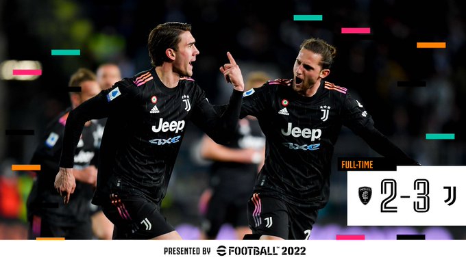 La 'Vecchia Signora' salió airosa gracias al doblete del serbio Dusan Vlahovic (40+2, 66'). Moise Kean puso el gol con el cual se adelantaron en el marcador (32').