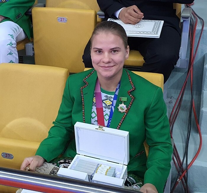 Las celebraciones en honor a Guryeva fueron conducidas por el entrenador honorífico de Turkmenistán, Serdar Berdymujamedov, hijo del presidente del país, Gurbanguly Berdymujamedov.
