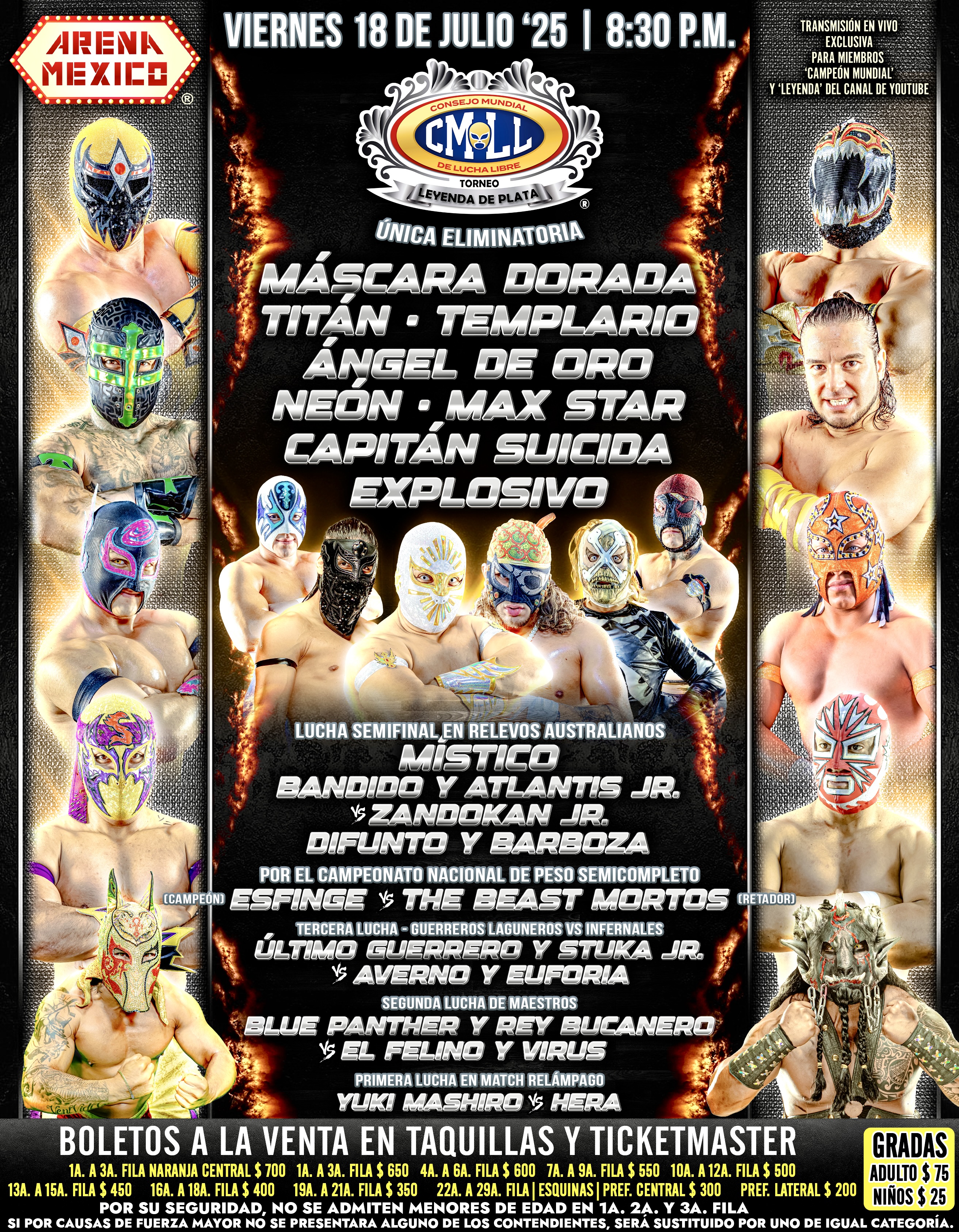 La contienda estelar de la velada será el Torneo Leyenda de Plata, que tendrá una única eliminatoria y en la cual estarán involucrados Máscara Dorada, Titán, Templario, Ángel de Oro, Neón, Max Star, Capitán Suicida y Explosivo.