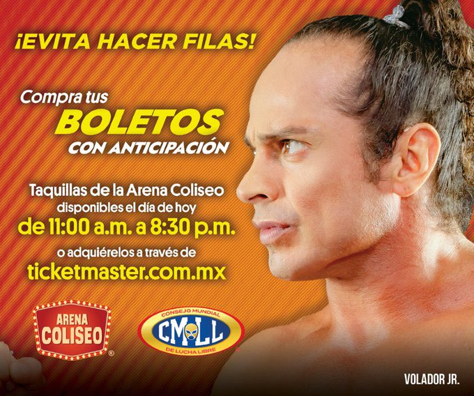 Los boletos para el CMLL, que esta noche comienza 19:30 horas, se encuentran disponibles directamente en la taquilla de la Arena Coliseo y a través de Ticketmaster.