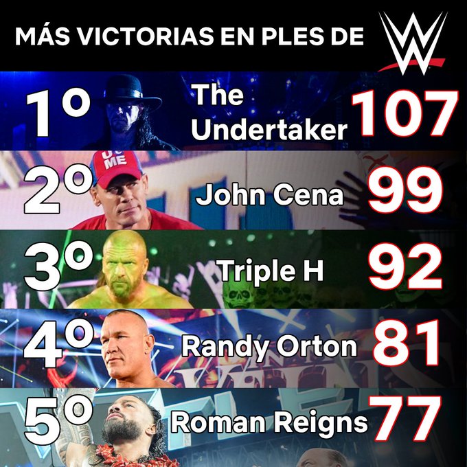 John Cena llegó a su triunfo 100 en PLE (Premium Live Event) y se quedará en la segunda posición por detrás del Undertaker, que alcanzó 107.