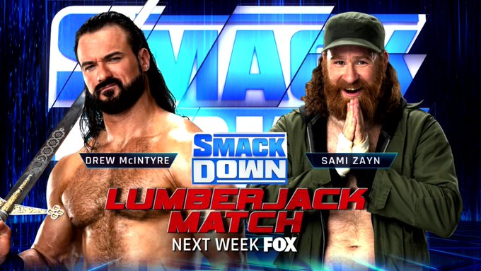 Drew McIntyre buscaba revancha tras lo sucedido la semana pasada, en la que Sami Zayn escapó entre el público durante la contienda que sostuvieron. Esta semana, el excampeón intercontinental se la volvió a aplicar, aunque no se fue limpió. Adam Pierce se mostró furioso por lo sucedido y pactó para la próxima semana otro mano a mano, solo que esta vez será una lucha de leñadores.