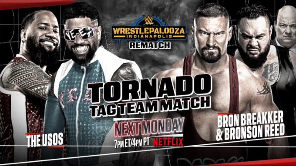 - Jey Uso & Jimmy Uso vs Bron Breakker & Bronson Reed: combate por equipos estilo tornado