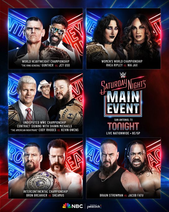 Esta noche WWE presenta Saturday Night's Event, el primer show premium del año, en el cual estarán en juego muchos títulos, incluido el campeonato mundial de peso pesado, por el que se enfrentarán Gunther y Jey Uso.