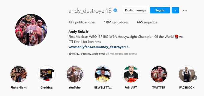 Andy Ruiz y su cuenta oficial en Onlyfans