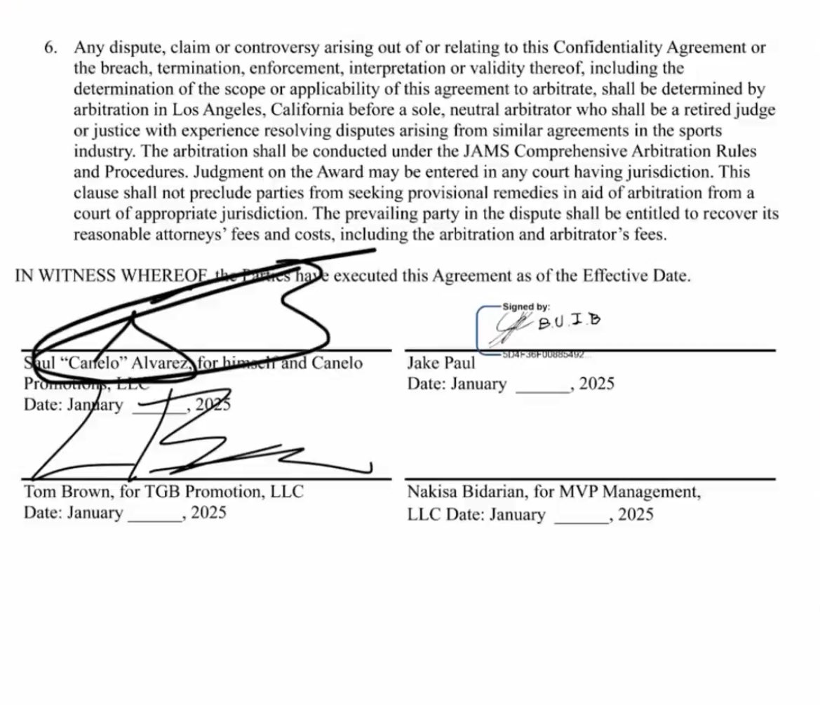 Ya entrada la noche del viernes, el estadounidense quiso "exponer" a Canelo, ya que habría firmado un contrato para pelear, el cual mostró en un video que compartió en sus redes sociales. Además ya habían acordado cuándo harían oficial el encuentro.