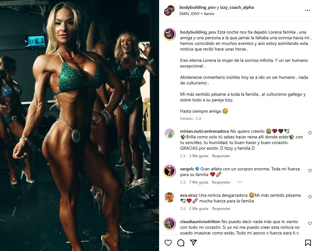 El mundo del fisicoculturismo se volvió a pintar de luto luego de que se confirmara la muerte de Lorena Blanco Pita, famosa culturista española que falleció de un infarto fulminante a la edad de 37 años.