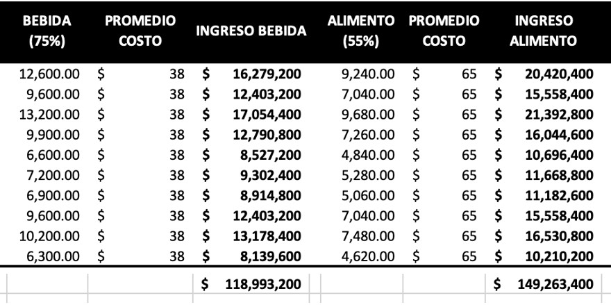 Haciendo la suma de los totales de tickets, bebidas, alimentos y merchadising, el ingreso “estimado” para los equipos será alrededor de los $ 1,611.5 MDP. Claro, haciendo un escenario muy conservador, y sólo en temporada regular.