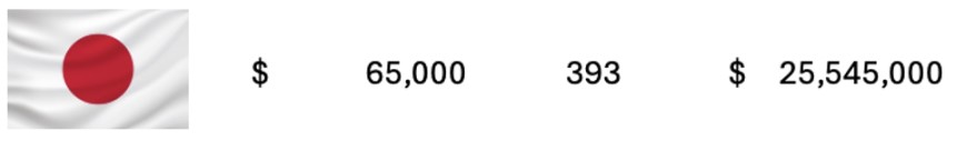 Para estos juegos olímpicos, los 393 atletas de Japón, tuvieron un costo estimado, basados en un costo promedio de $ 25.5 MDD.