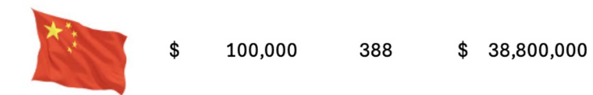 Cada país es muy variado en cuanto el organismo que rige y aporta el recurso , también la geografía por los costos de tralsado, etc., en el caso de China se estima que el costo anual puede oscilar entre $50,000 y $150,000 USD por atleta. Este gasto incluye todo lo anteriormente mencionado que debe incluir el costo del atleta.