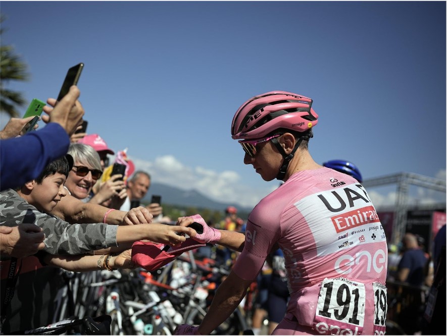 Lo que lo convierte en el ciclista mejor pagado del mundo, además de líderear el equipo UAE Emirates, tiene firmas con patrocinadores cómo: zapatillas DMT, cascos MET, productos nutricionales Enervit y los que surjan a partir de ser el nuevo campeón.