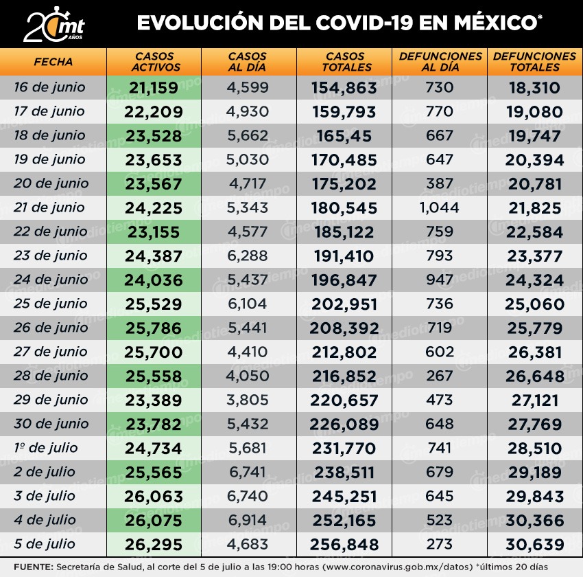 Además, el número de casos activos, ya son un total de 26 mil 295, mientras que los casos sospechosos, siguen ascendiendo con 71 mil 305. El número de contagios acumulados desde que inició la Pandemia en nuestro país, es de 256 mil 848.
