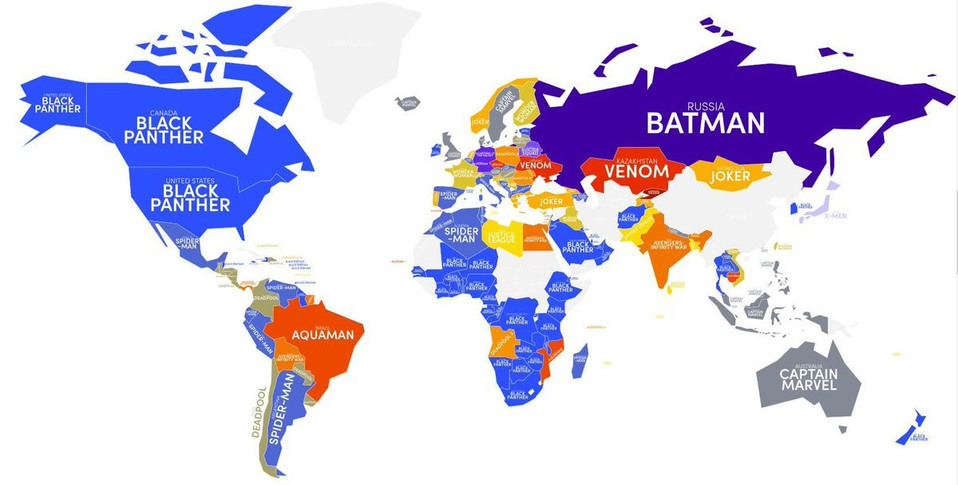 Cabe destacar que Batman solo aparece como el más popular en Rusia y en ningún lado se muestra Superman como número uno; es más, villanos como Joker y Venom, son más populares que el hombre de Krypton.