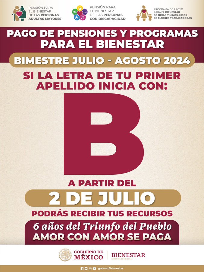 Ariadna Montiel, de la Secretaría de Bienestar, ha anunciado que los adultos mayores que tienen 65 años de edad o más tendrán la oportunidad de recibir nuevamente su pago de 6 mil pesos. Este beneficio comenzó a distribuirse el 1 de julio del 2024, iniciando con aquellos beneficiarios que cuyos apellidos empiecen con la letra A.