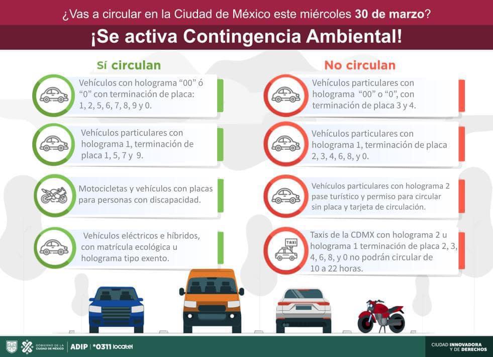 Por Contingencia Ambiental Fase I el #HoyNoCircula del miércoles 30 de marzo aplica para los ???? con #EngomadoRojo: