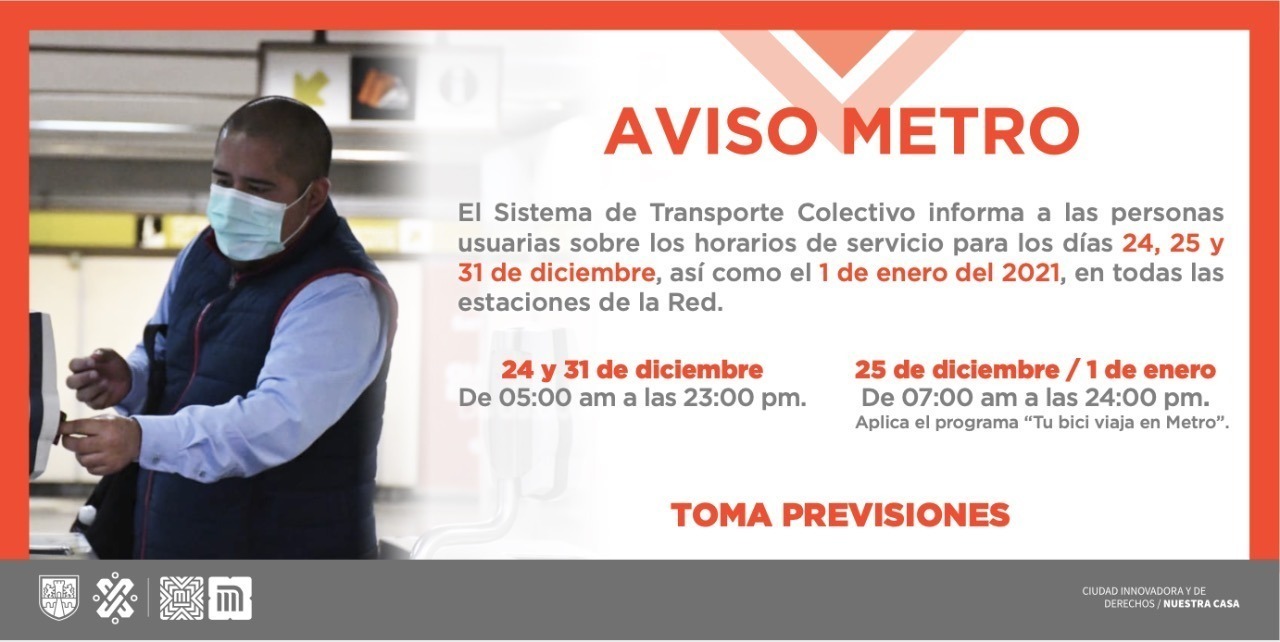 - El 24 de diciembre habrá servicio de las 05:00 a las 23:00 horas.