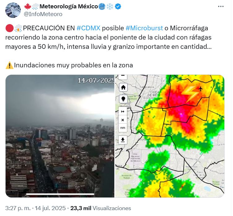 Este lunes 14 de julio de 2025 varios puntos de la Ciudad de México y el Estado de México registraron una lluvia bastante intensa —que estuvo acompañada de granizo y fuertes ráfagas de viento—, misma que sorprendió a miles de personas.