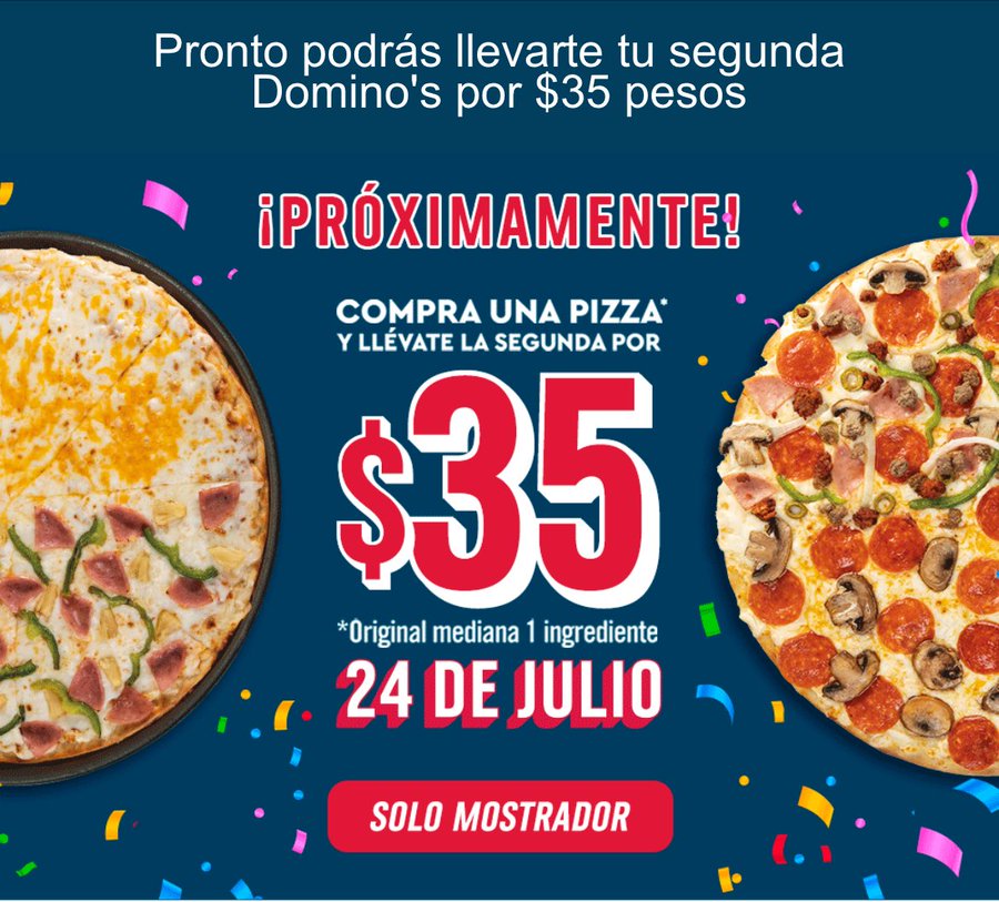 Es importante mencionar que para poder compara una pizza a 35 pesos, los clientes deben comprar primero cualquier pizza para poder agregar la segunda, la cual será una original mediana de un ingrediente. La oferta será valida solo en mostrador.