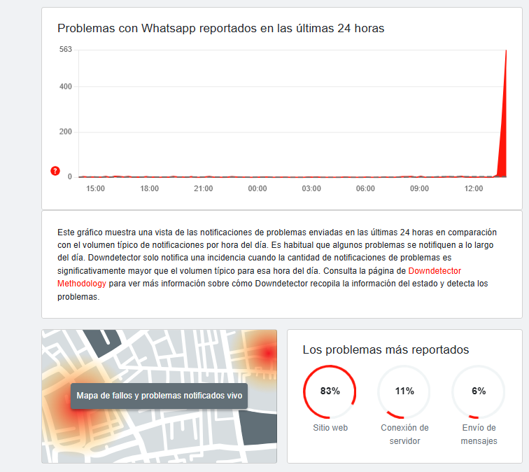 De acuerdo con lo mencionado por la página de Downdetector y varias publicaciones de usuarios de internet, las principales fallas que encontraron fueron que no carga el servicio de WhatsApp Web.