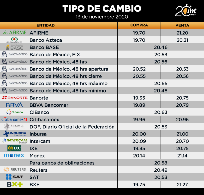 Las principales casas de cambio y sociedades financieras en México presentan esta paridad dólar-peso.