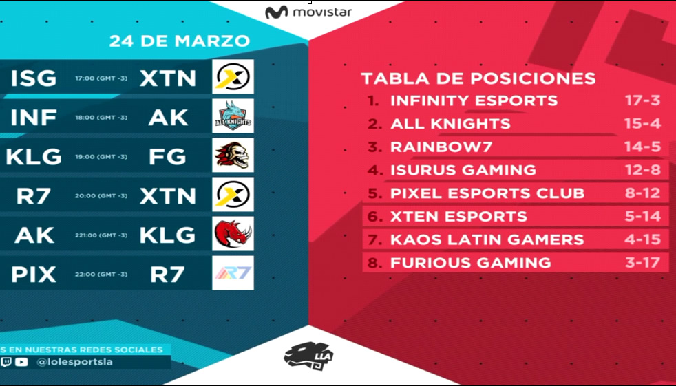 La victoria de Xten en contra de Furious y la derrota de KLG en el clásico de Latinoamérica colocan a Xten por el momento como el último equipo para entrar en playoffs. Restando 2 puntos Xten y KLG aún están en busca del último puesto para playoffs.