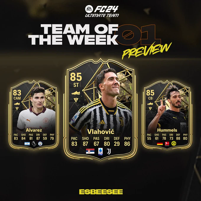 - Las cartas del TOTW se distinguen por su diseño en negro y dorado, y muestran una significativa mejora en sus valoraciones generales, además de posibles actualizaciones en sus habilidades y atributos.