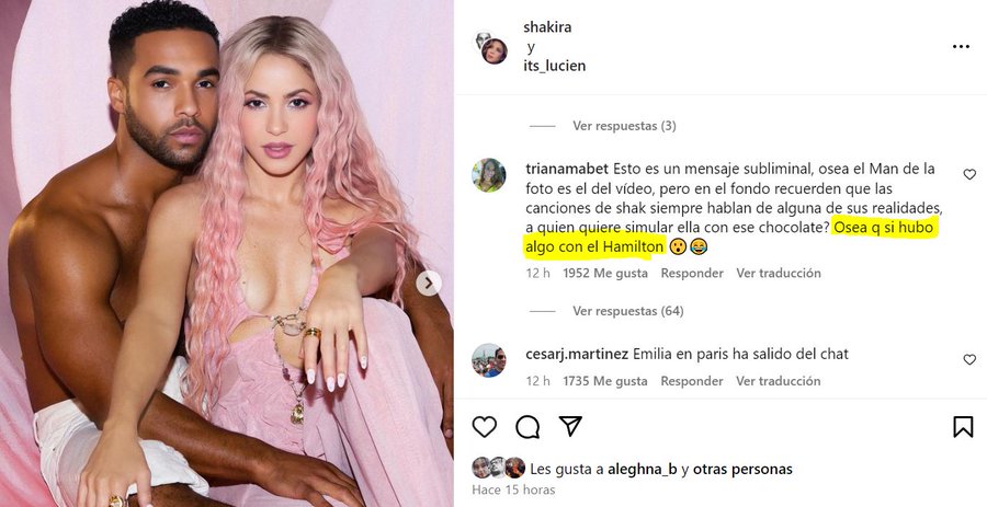 Tanto en la publicación de Shakira como en redes sociales se compartieron varios mensajes en lo que se mencionó a Hamilton. "Amigos vi esta foto de Shakira sin lentes y creí que era LEWIS HAMILTON", "Le costaba tanto a Shakira llamar a Hamilton y hacer estas fotos y ver el mundo arder", fueron algunos de los comentarios generados.