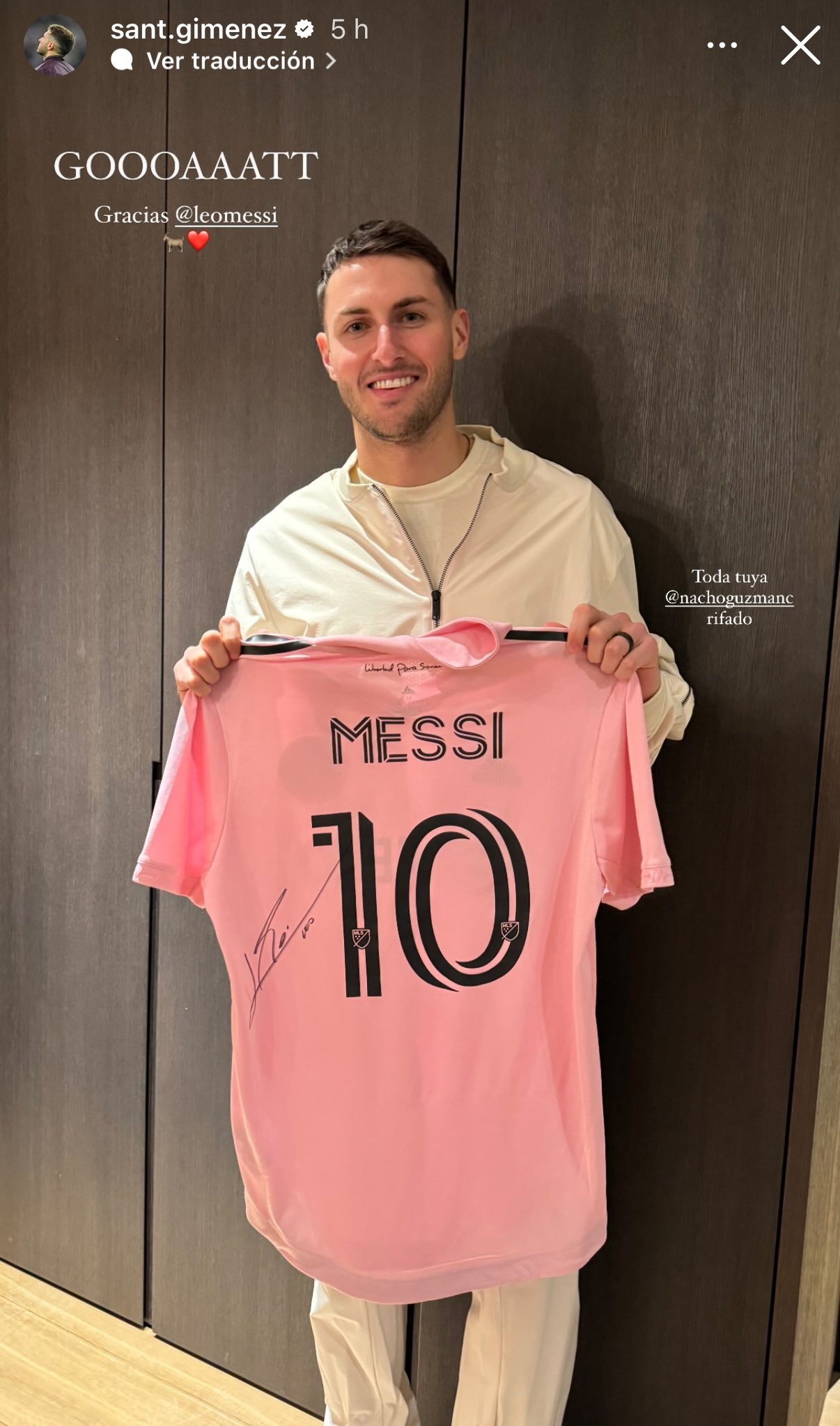 Santiago Giménez presumió en sus stories de Instagram, el jersey del Inter Miami que le firmó Lionel Messi, a quien el delantero mexicano admira y considera como el mejor futbolista de todos los tiempos.