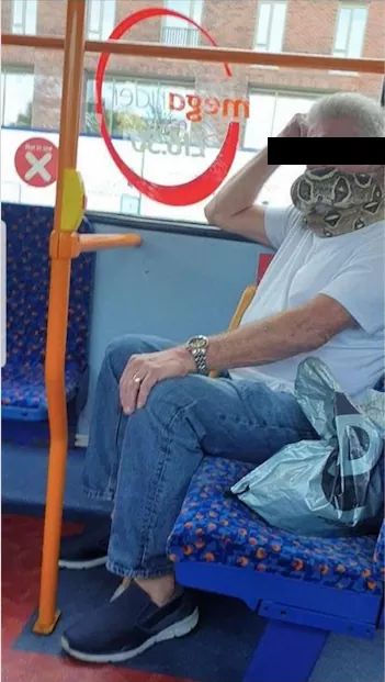 Esto llamó la atención de varias personas que tomaron imágenes del personaje y su reptil, que incluso trepaba por los tubos del vehículo, de acuerdo con reportes emitidos por el Manchester Evening News.